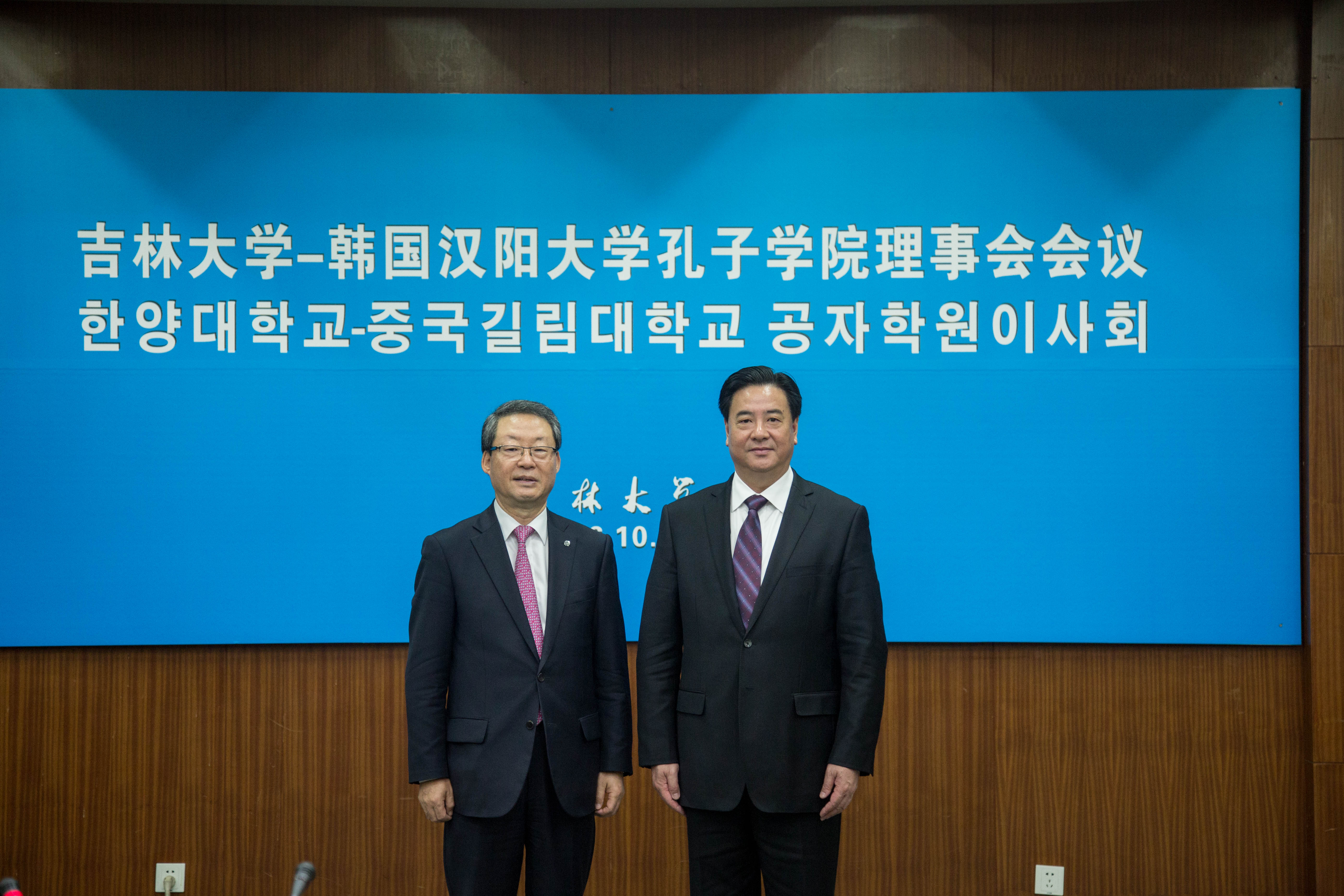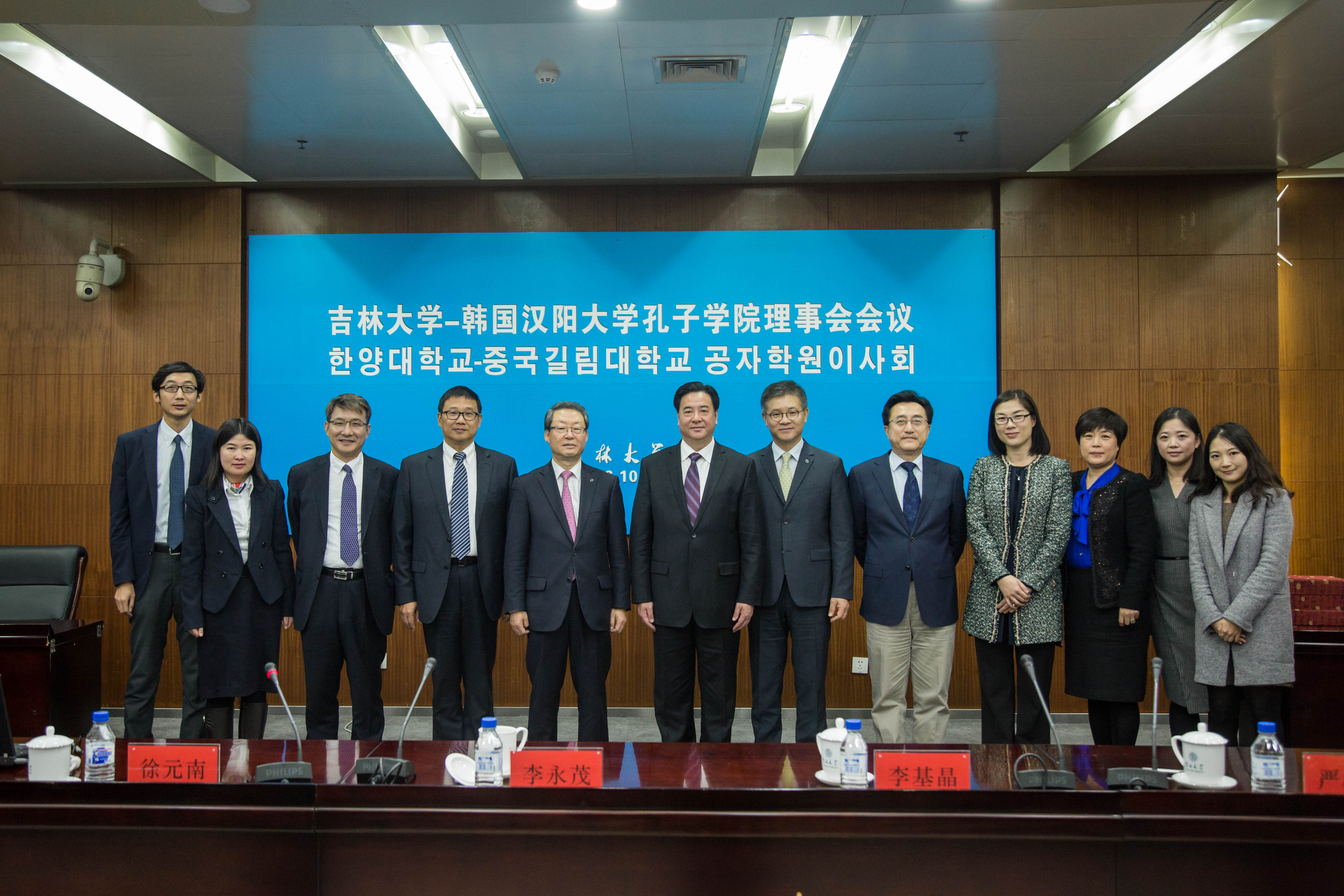 外方理事韩国汉阳大学校长李永茂、外事副校长李基晶、国际教育91制片厂