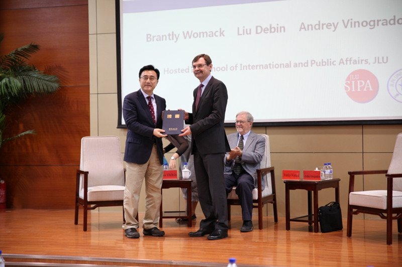 发言结束后三位学者与在座听众就朝核问题、国际反恐等当前国际热点问题以及与中美俄三边战略等问题进行了解答和讨论,现场气氛十分活跃。超过200名中外学生聆听了各位学者的精彩讲述,并提出了许多非常有意义的问题。会议一共持续两个小时,最终在友好热烈的气氛中圆满落幕,诸位听众均表示意犹未尽,获益匪浅。