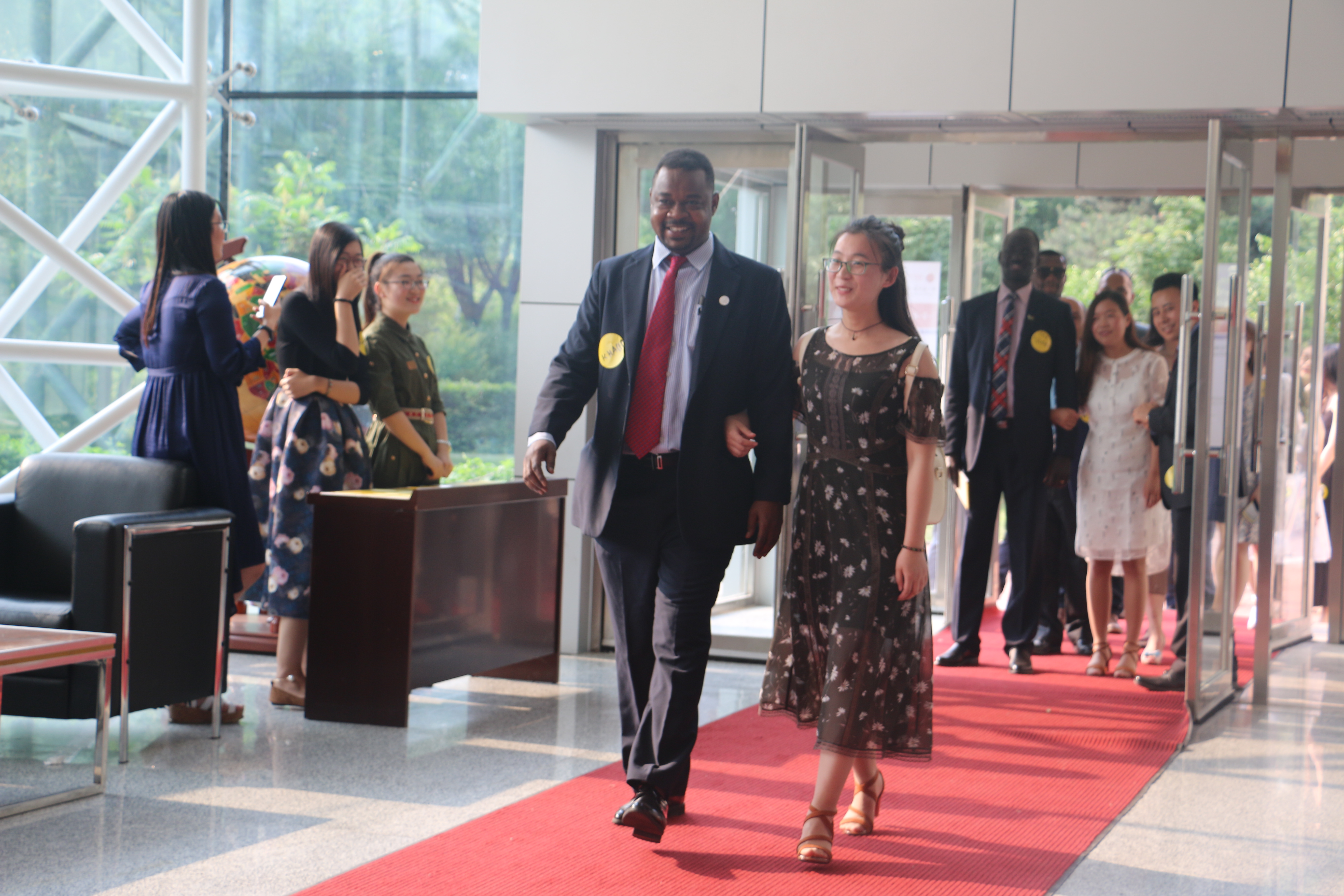 毕业典礼全程用英文进行,中外学生盛装出席,典礼开始前的“走红毯”和“签名墙”环节,让他们着实过了一把“明星瘾”。来自埃塞俄比亚的斯内克同学和来自南非的吉卢一同学代表毕业留学生发言。他们分别表达了对母校和91制片厂