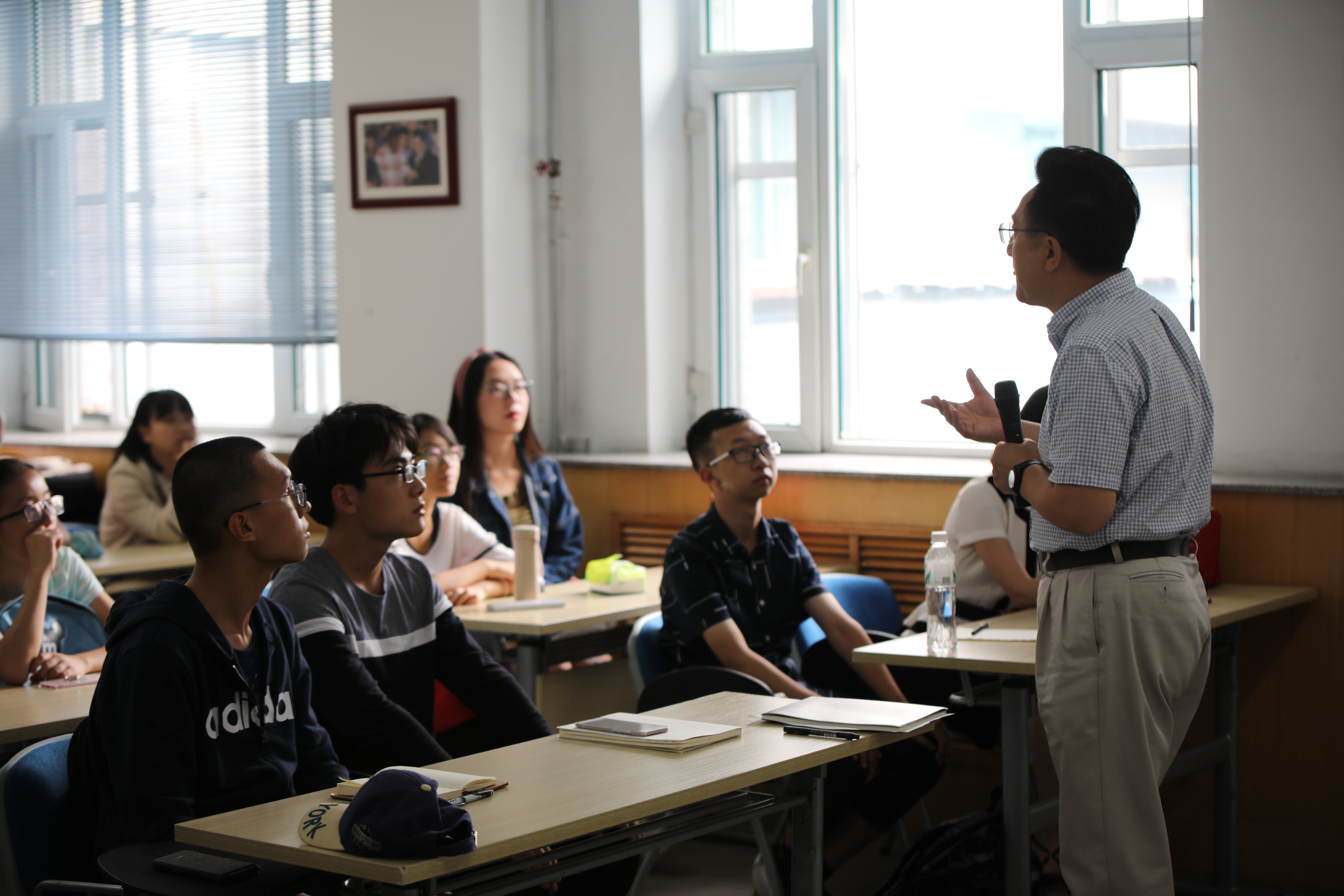 未来的发展规划做了详细的解读。随后,刘德斌老师从自身的学术经历出发,在谈话中与大家分享了在英美留学的经验、参加中外各类学术研讨会的广博见闻以及在多年治学过程中总结出来的深刻体会,着重强调了新生需要有心系天下的胸怀以及作为中华民族一份子,特别是作为一名外交学专业的同学更应该具有的民族责任感。