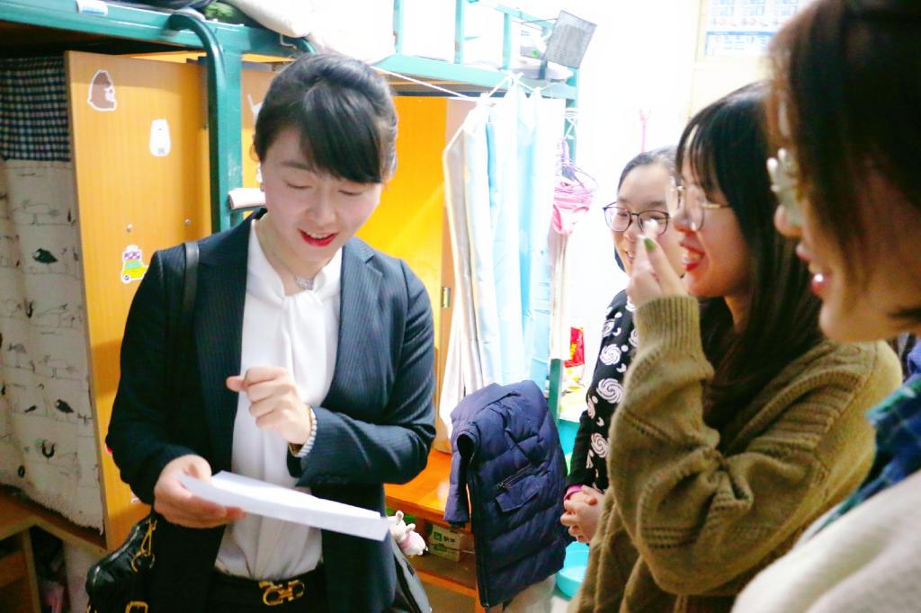 在走访过程中,肖晞老师、杨民老师和同学们进行了亲切友好的交流,他们十分关心同学新学期学习规划和毕业意向等情况,并对同学们新学期的学习寄予厚望,鼓励同学们要珍惜当下良好条件,努力学习,用知识武装自己,做好规划,努力前行,充分利用新学期的学习时间。同学们纷纷向老师进行了学业汇报,并且表示有信心尽快适应本学期新生活。