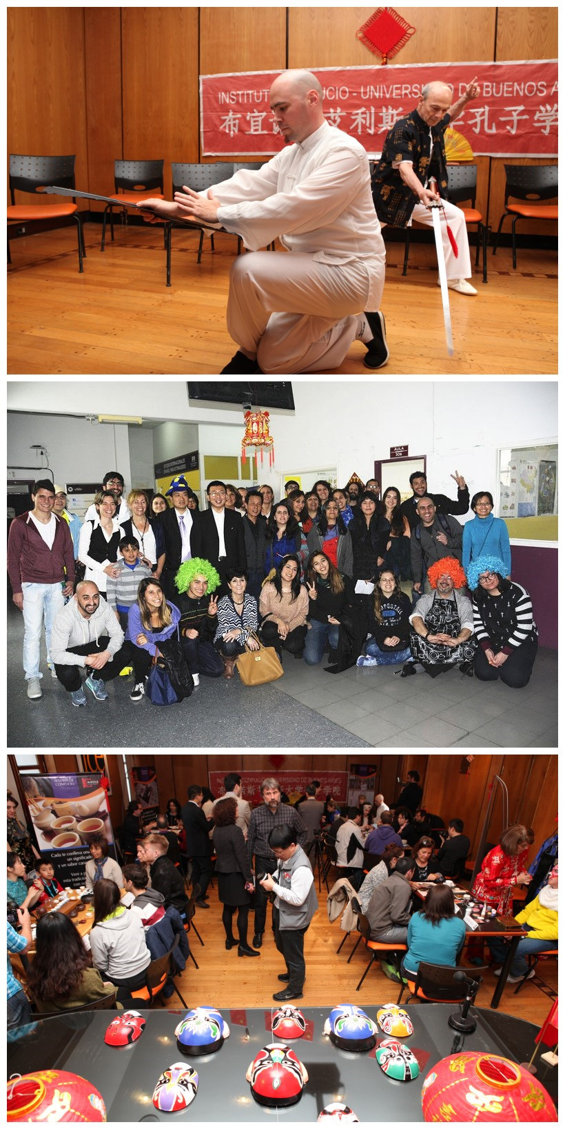 师生和阿根廷中国文化爱好者一百余人参加了此次活动。活动开始前,中国驻阿根廷大使馆韩孟堂文化参赞致辞,并敲响活动开始的锣声。活动中,布大孔子91制片厂