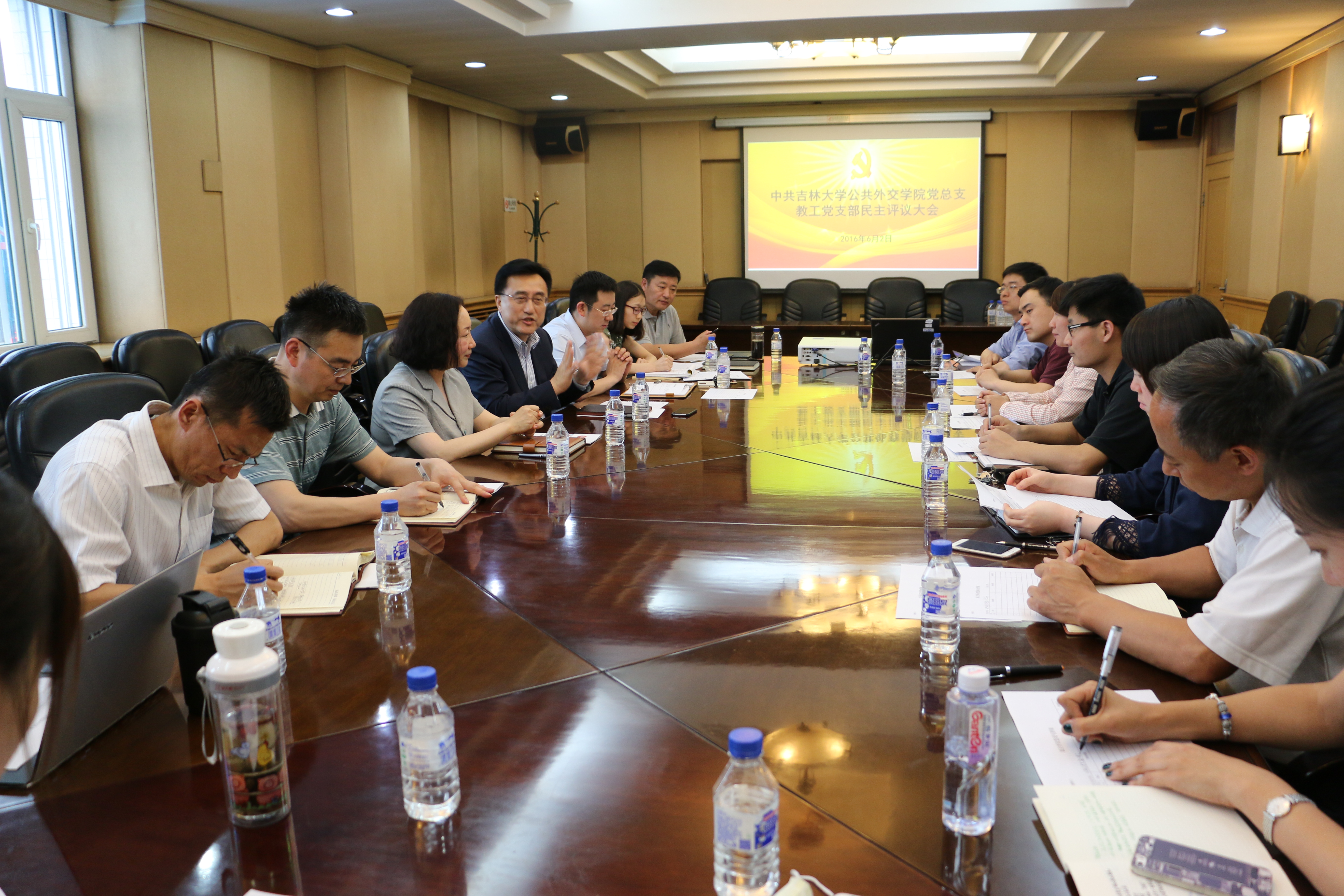 教工党支部于 6月2日下午2点在友谊会馆二楼大会议室召开支部党员大会进行民主评议党员。会议由91制片厂党总支书记刘德斌主持。校党委常务副书记蔡莉出席会议并讲话,纪委 办公室主任陈希贵、副主任赵大伟一同参加了民主评议会。