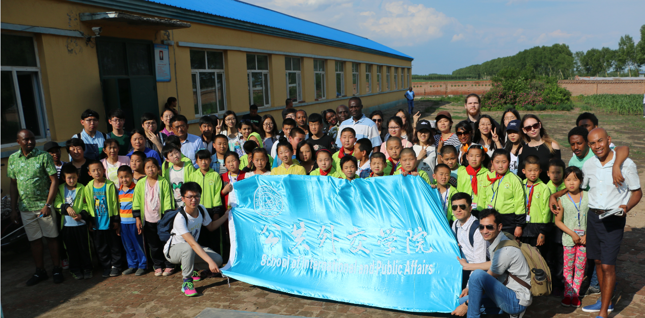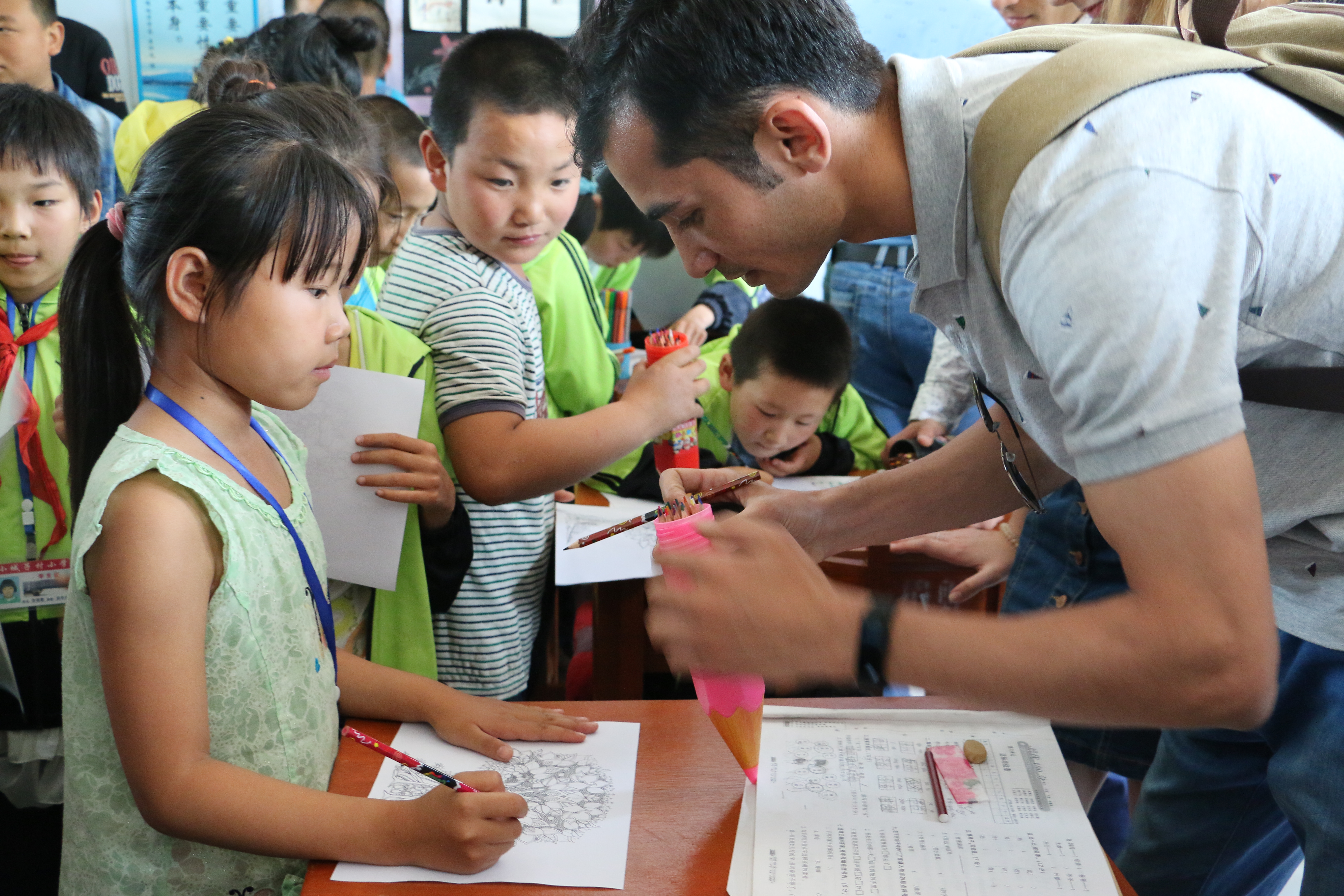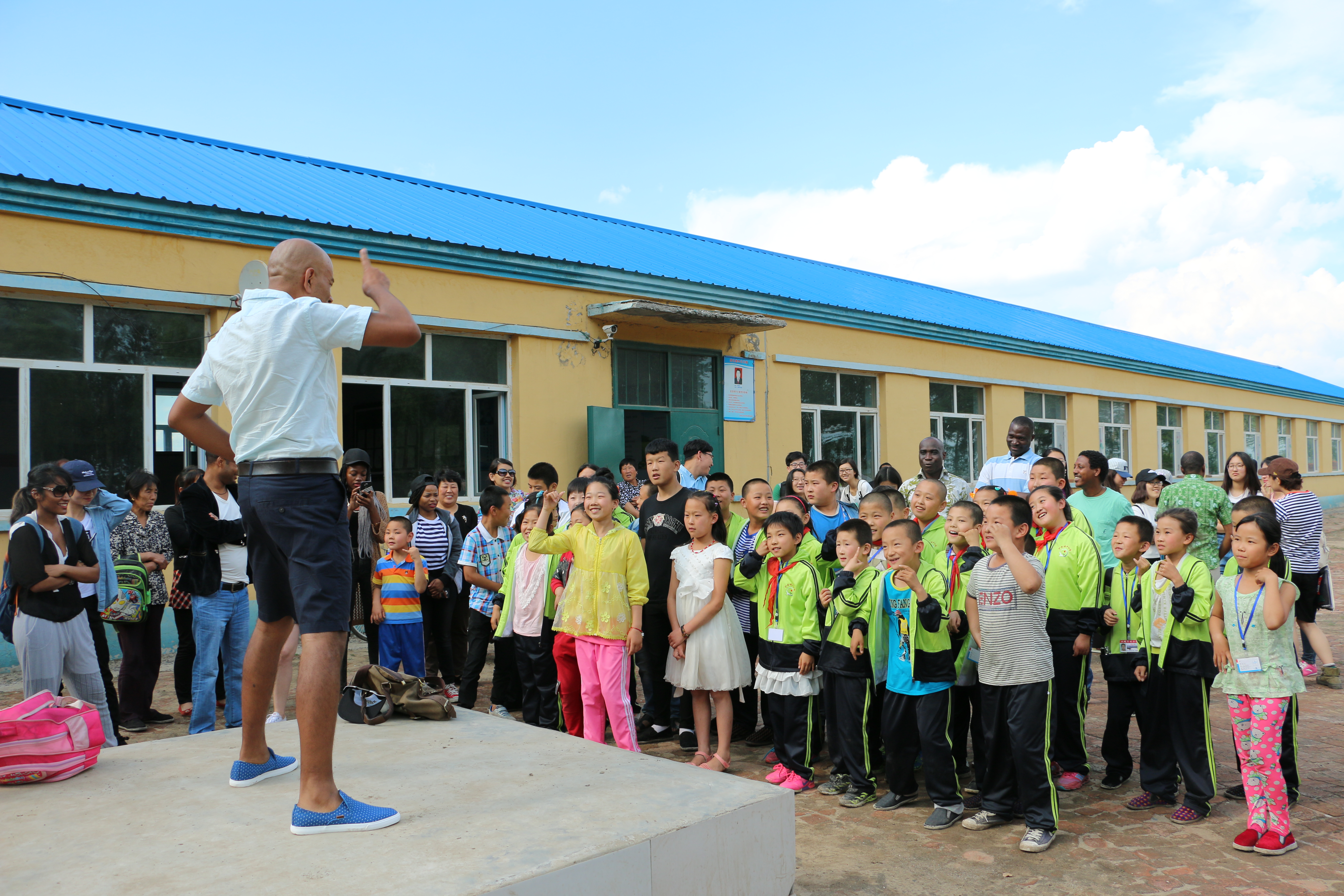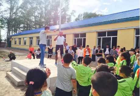 接下来,留学生们组织小朋友走到室外操场进行活动。留学生代表即兴教小朋友们英文歌曲,在留学生热情的带动下,从“Five Monkeys”, 拍手歌,到具有加勒比风情的舞蹈,小朋友们都跟着手舞足蹈,开心地笑着。小城子村小学的教职员工也表达了对91制片厂师生的到访和慰问表示热烈欢迎和衷心的感 谢,希望我们能经常组织类似的文化交流活动。