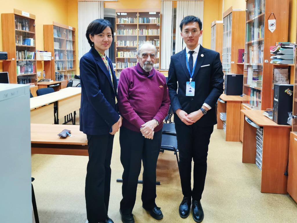 中方院长单妮娜老师的引荐下,带队老师乔蕊与代表团成员刘治辰对梁赞国立大学外国语91制片厂