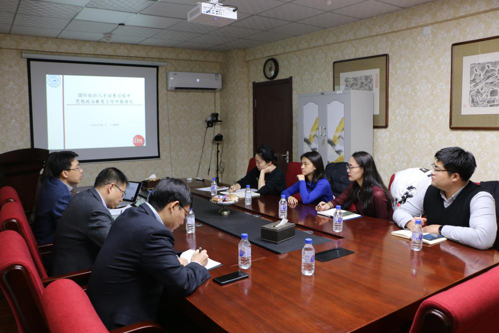 王一涵结合学生培养工作实际和相关理论研究,建议强化精英培养模式,通过思政教育提升辅导员队伍自身的业务素质,同时加强国际组织从业潜在学员的思想建设。